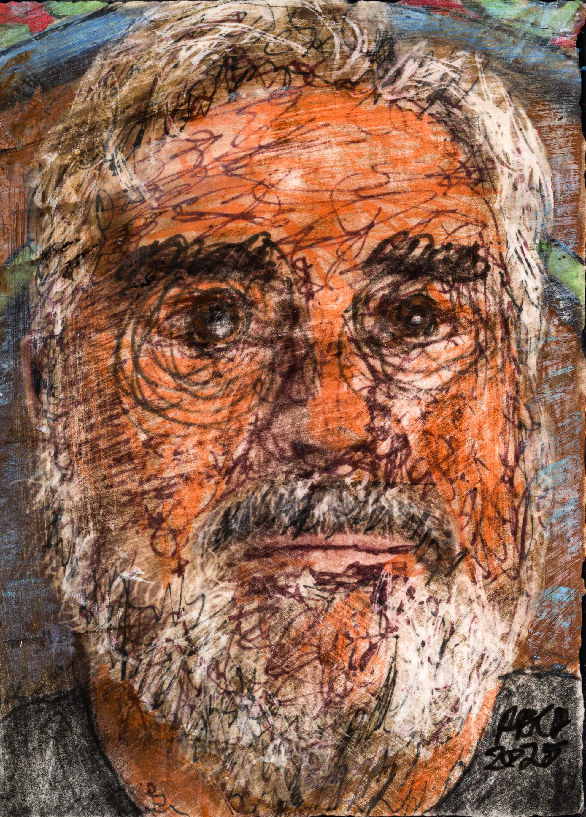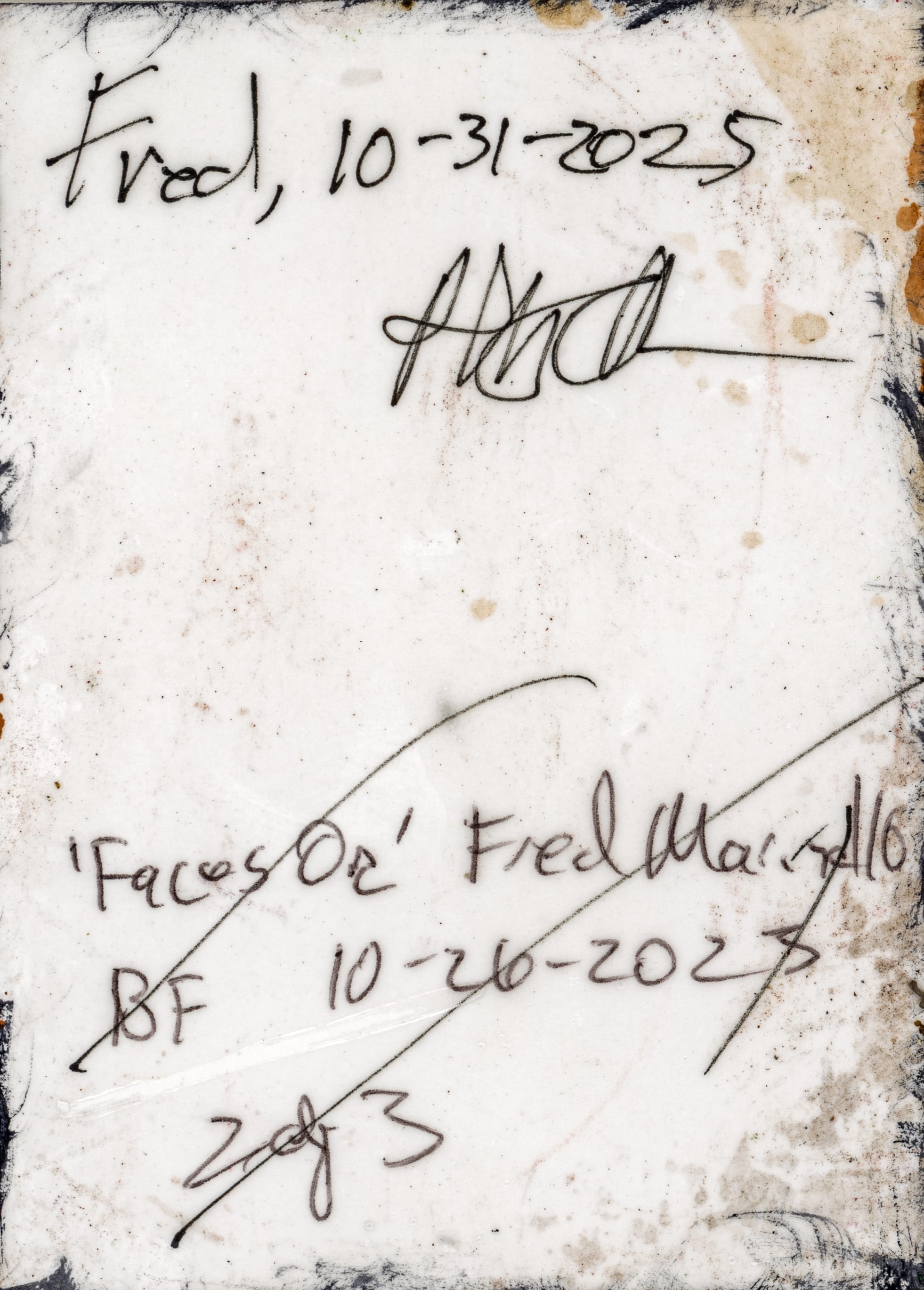 Fred, 10-31-2025 mixed media 2.5x3.5 varnished both sides with Liquitex Gloss Varnish packaged in clear artcard storage box $69
