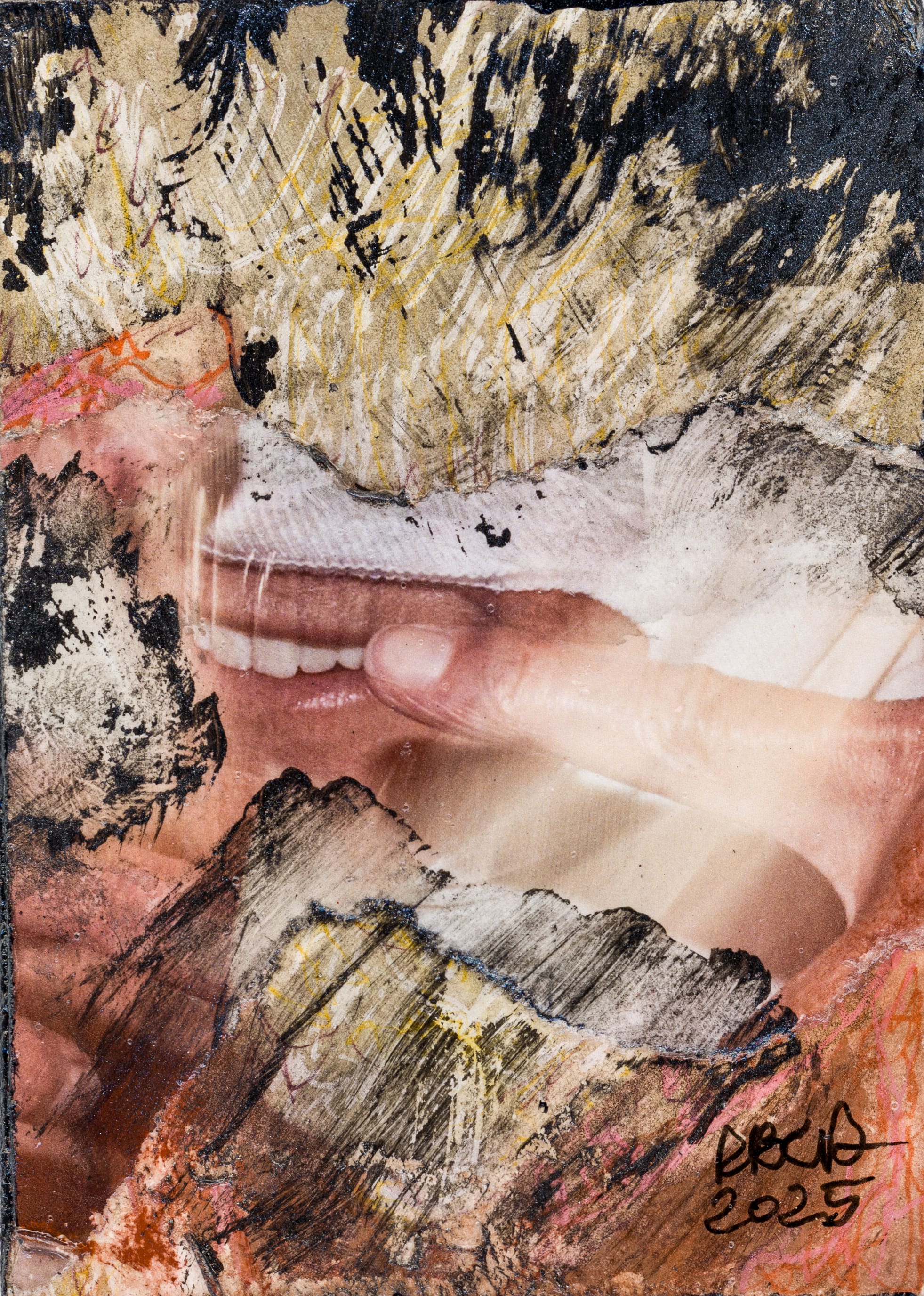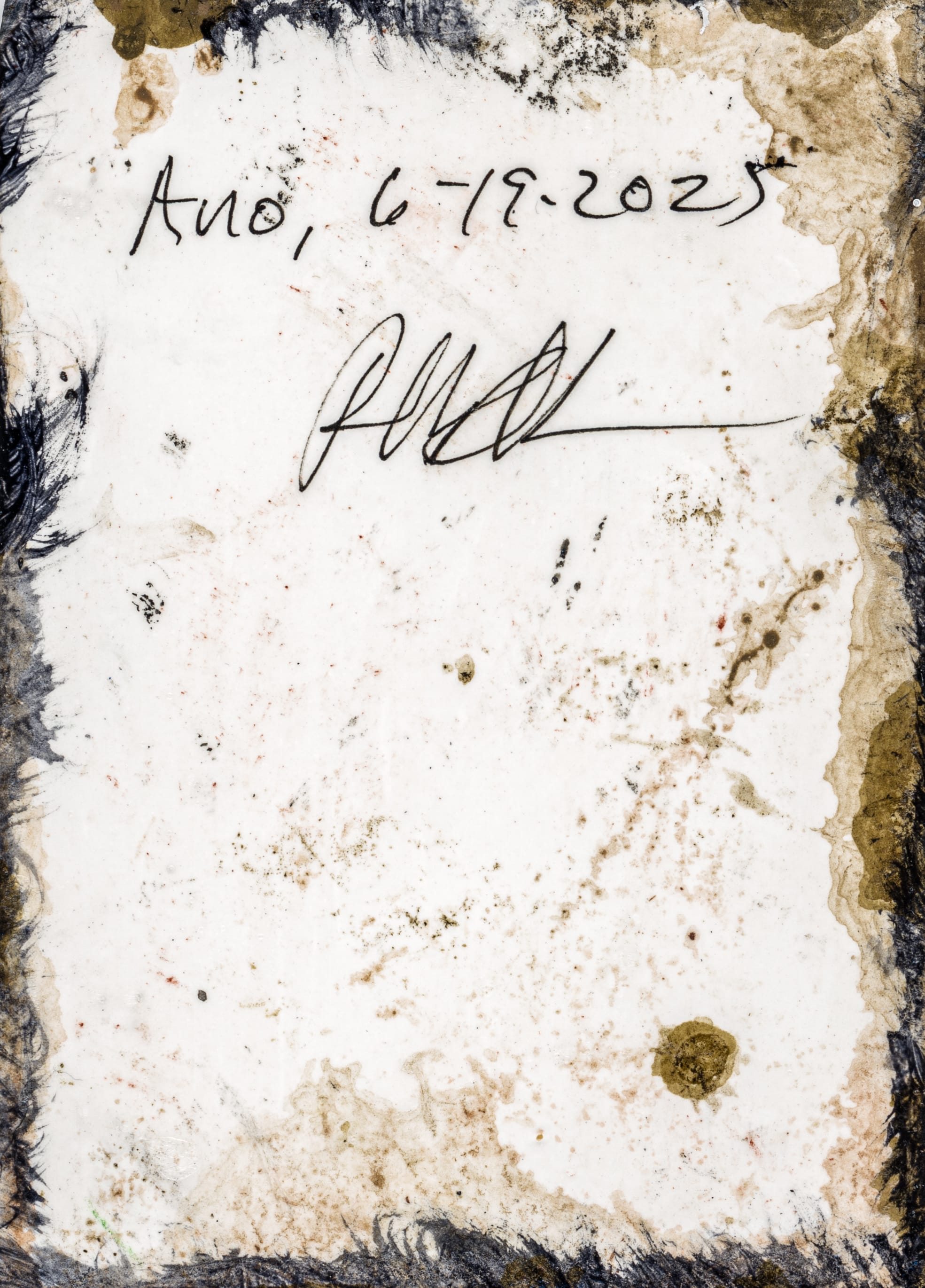 Ano-6-19-2025 mixed media 2.5x3.5 varnished both sides with Liquitex Gloss Varnish packaged in clear artcard storage box $70