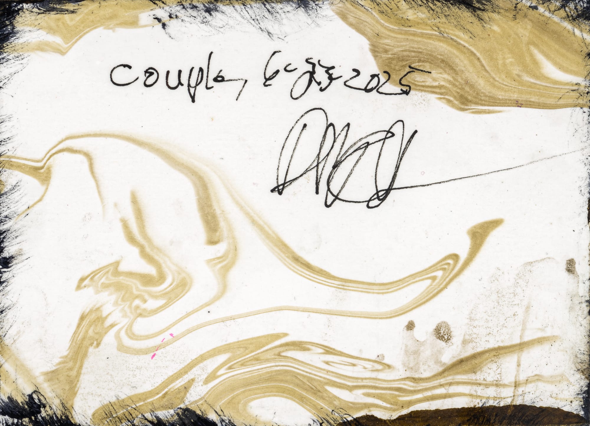 Couple, 6-23-2025 mixed media 2.5x3.5 varnished both sides with Liquitex Gloss Varnish packaged in clear artcard storage box $70