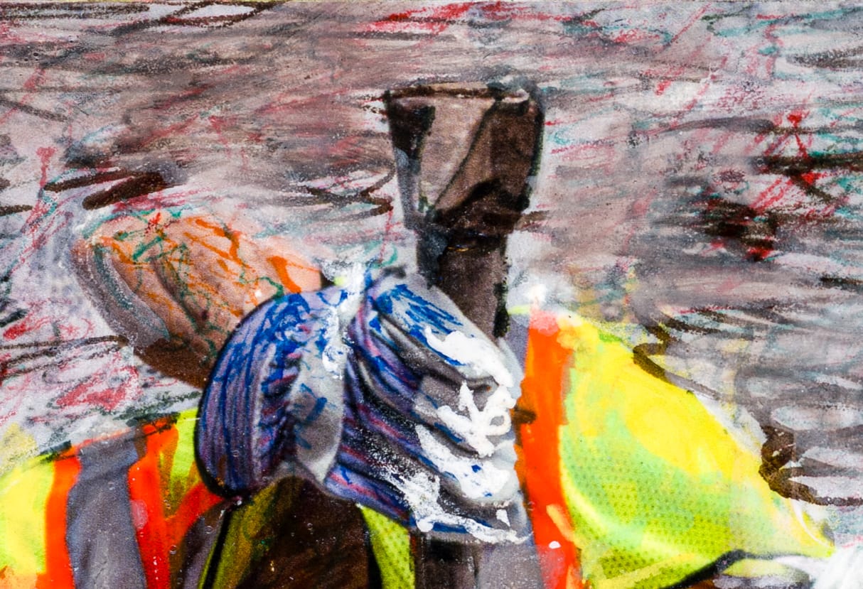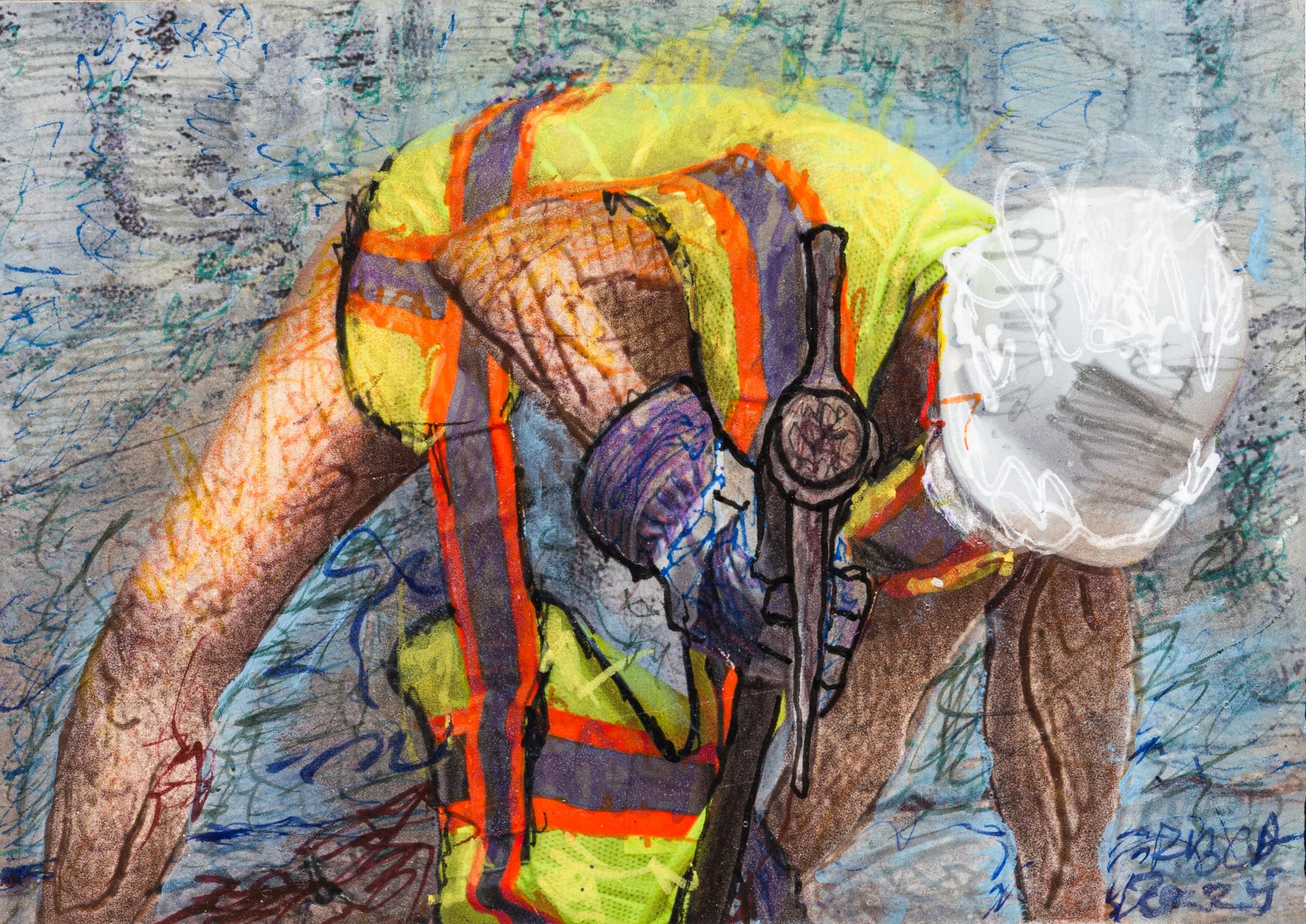 Recently most of my work has been sexpositive miniatures (2.5x3.5"), involving a naked person or two (stopping short of 3). Here are some accidently SFW images (that safety equipment covers a lot), Kay faces from earlier, and some train blurs.