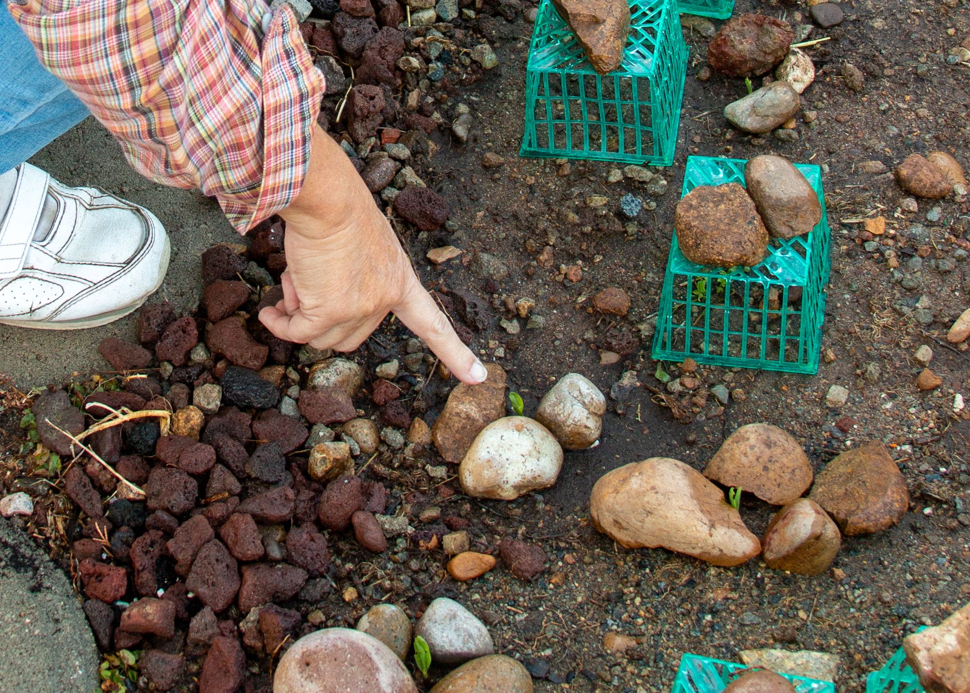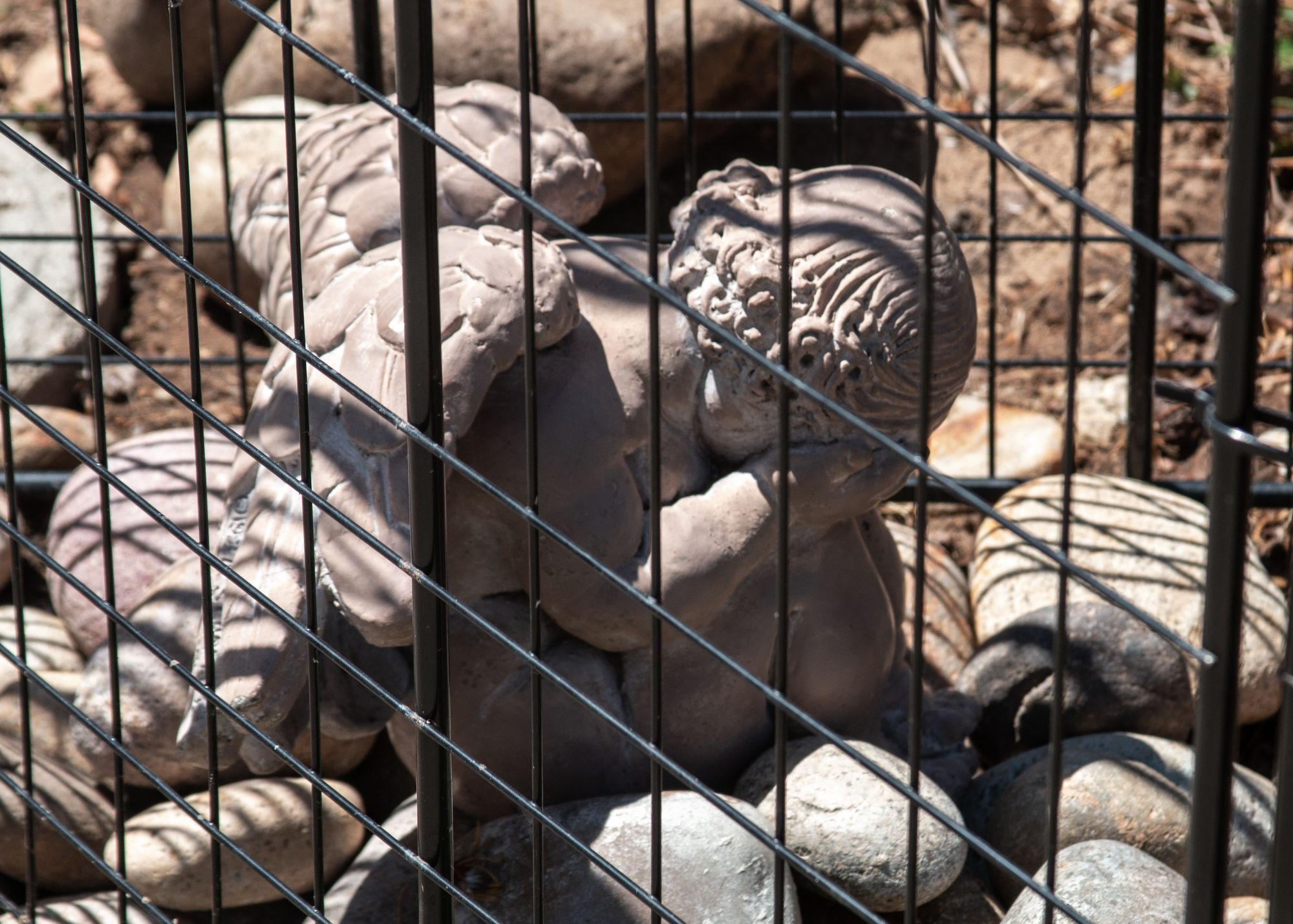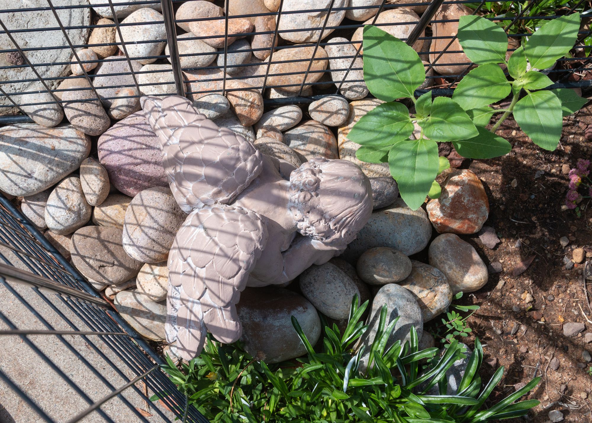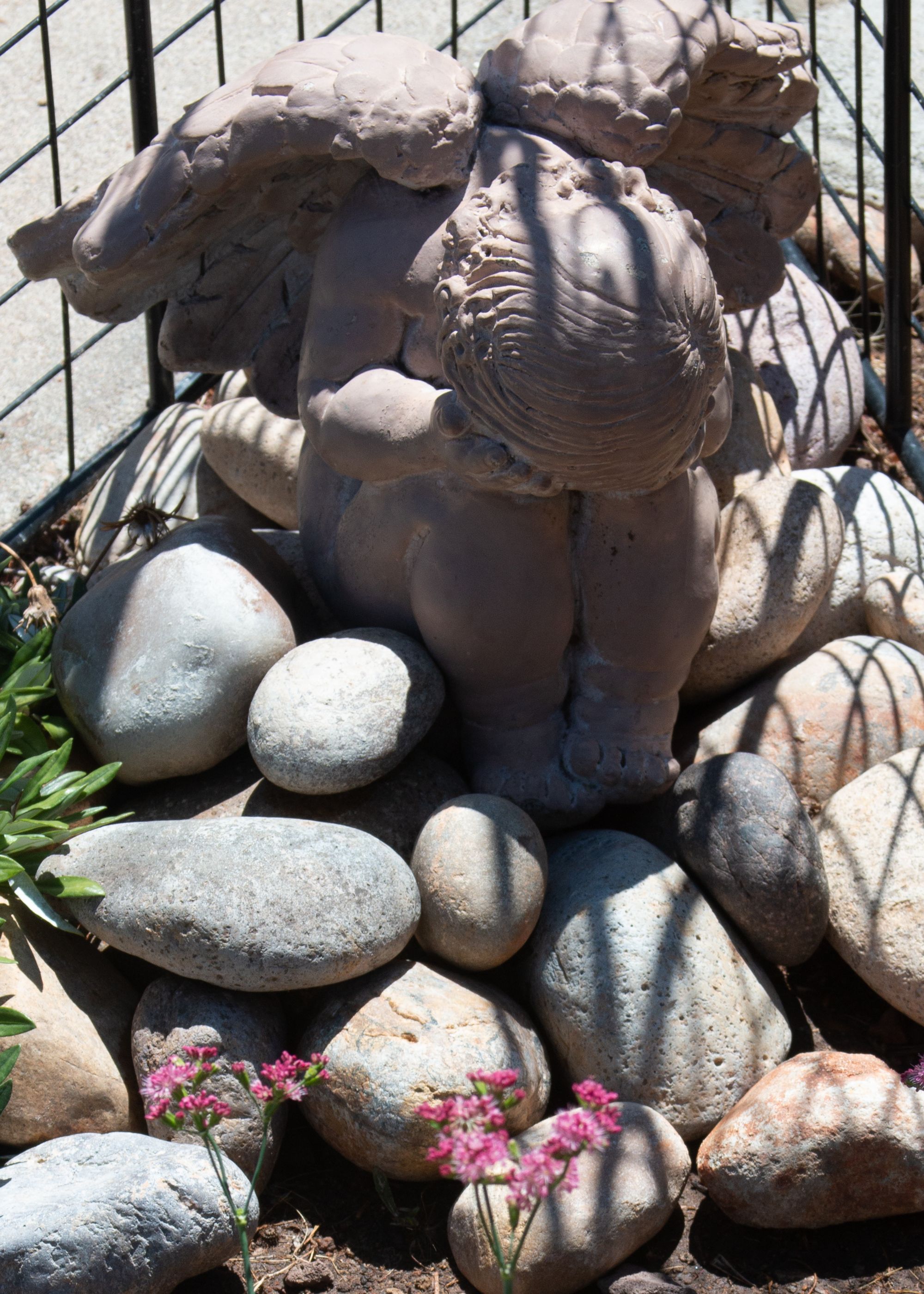 Maria took the angel off the dirt onto the rocks, trying to make it better, formalize, tidy...