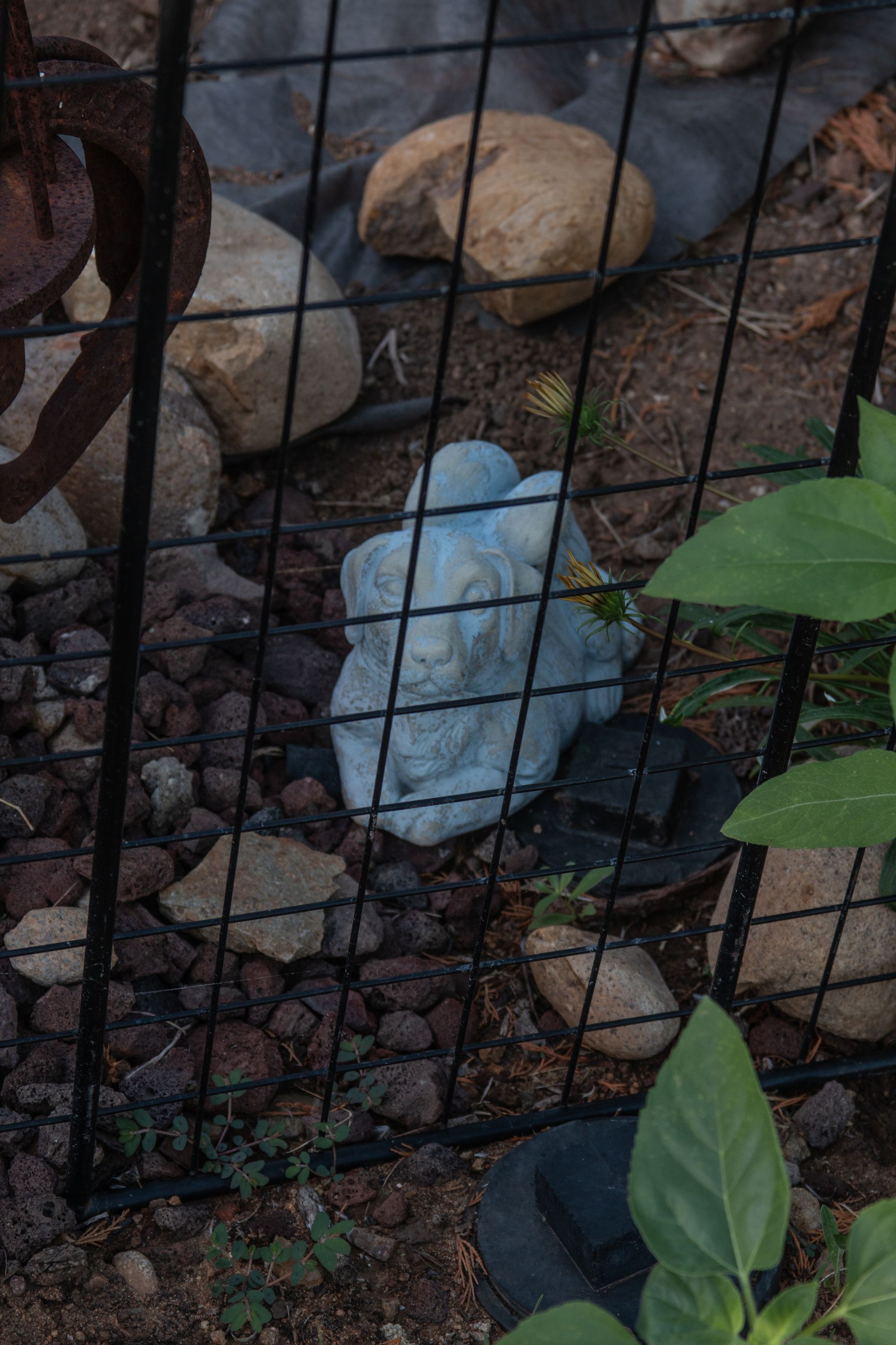 We bought a plant which brought to mind mourning, shifting from the cage to the relationship between the figure and the plant.