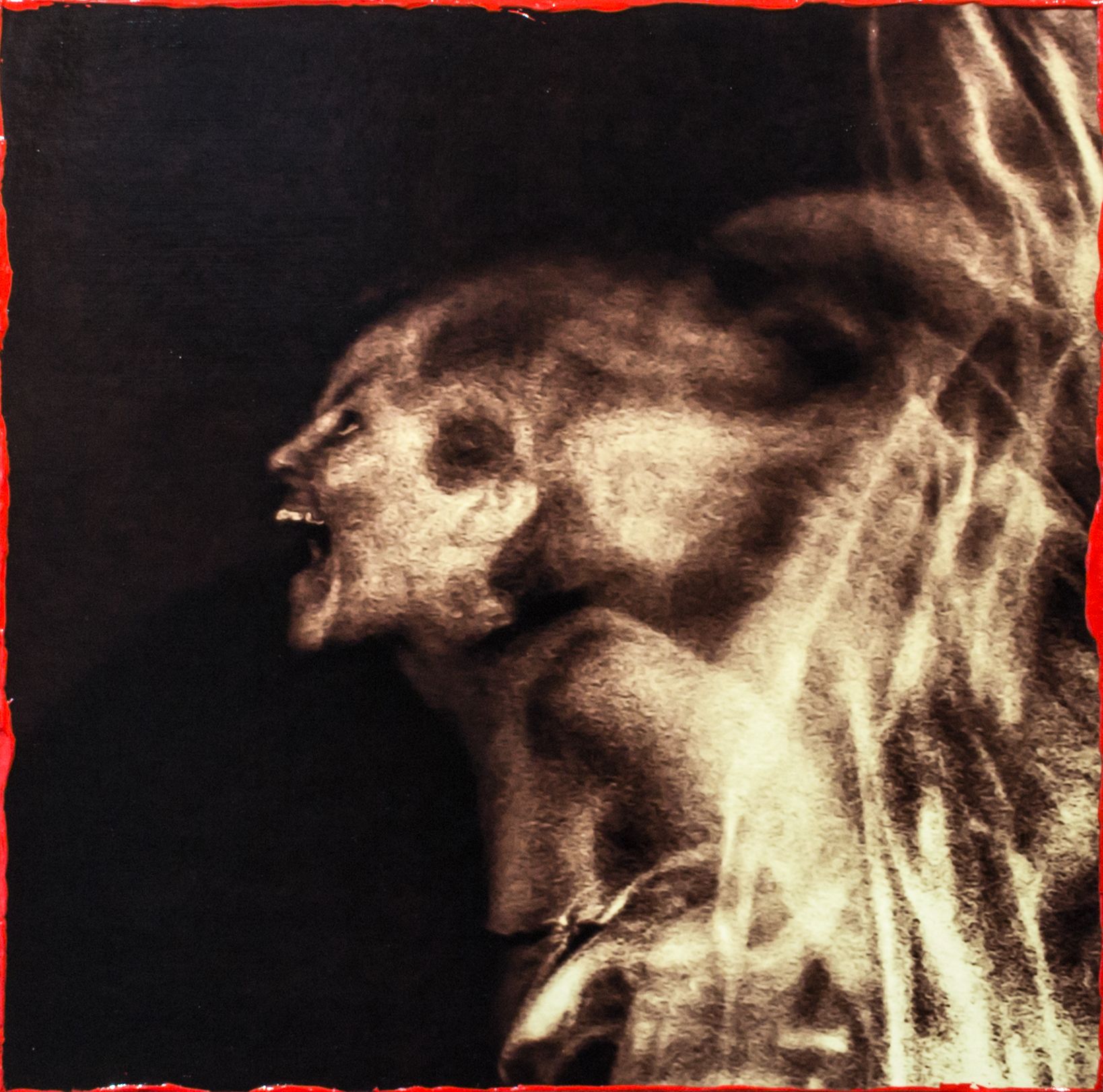Epson P800, UltraChrome HD ink, Epson Hot Press Natural Paper, Liquitex Cad Red Med acrylic on the border, varnished with Liquitex Acrylic Gloss Varnish, Mounted on Blicks cradled and primed hardboard. The sides are primed and then painted with BM black chalkboard paint (easy to touch up or leave notes...). The piece is wired and ready to hang.