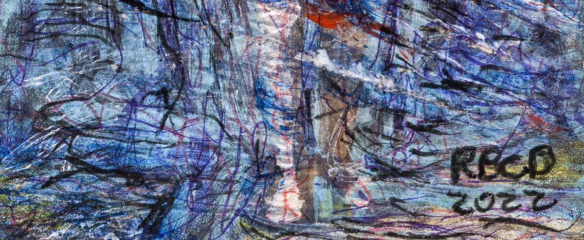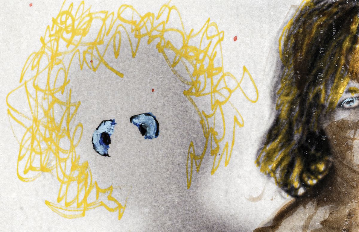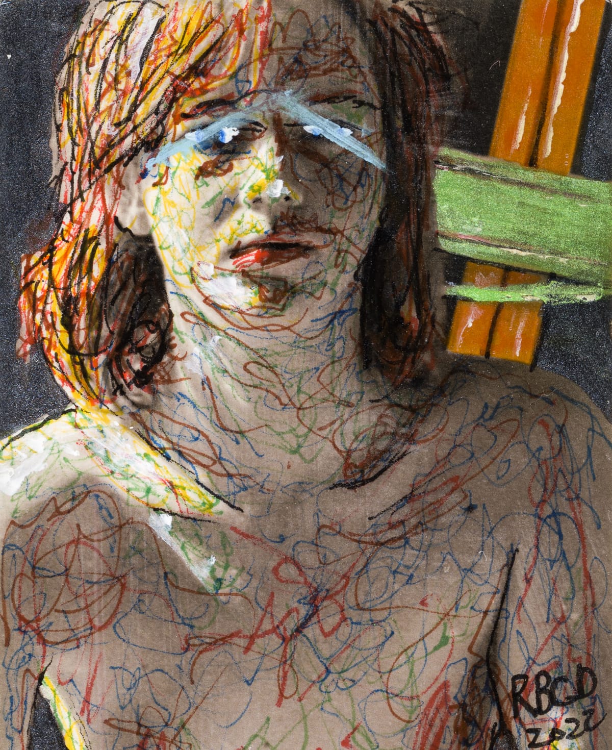 The original underprint photo is from a shoot Richard did in his first studio in Santa Barbara after graduating from UCSB. Series of 5, underprint, Micron pens and acrylics creating a mixed media piece is 2.5 x 3.5″ Finished with a coat of Liquitex Acrylic Varnish to protect it (UV resistant).