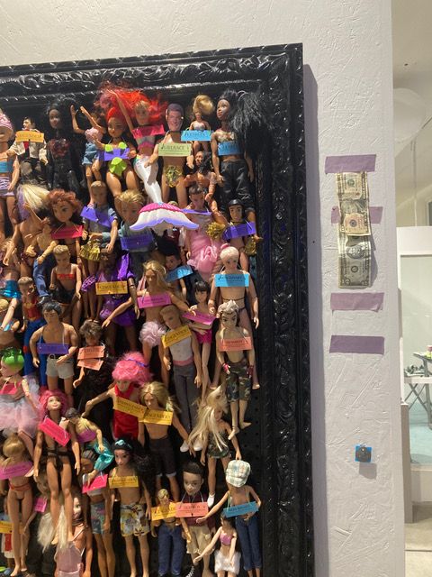 Patric Stillman of The Studio Door sent me this picture. I (with permission) taped a bill next to my personal favorite (by Teem Stir) in the show. Someone else joined in and taped another bill. The empty tapes are not missing dollars but were put there by that someone just in case