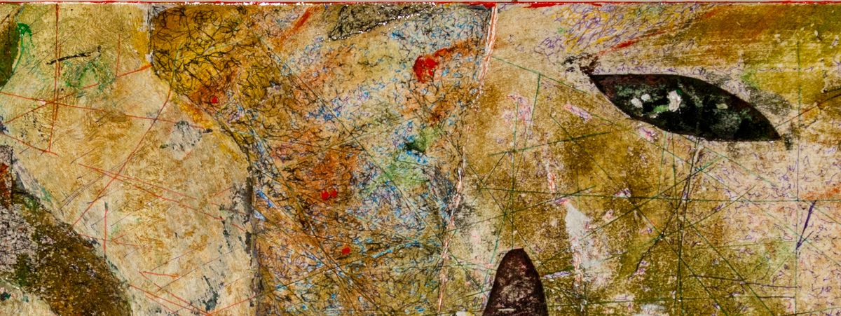 In this peeled piece I used a snap from the porch video as a mask. Peeling away various parts of the image until it was completely gone. The work is instead covered by fine lines, razor cuts, acrylic and grinds down to the wood.