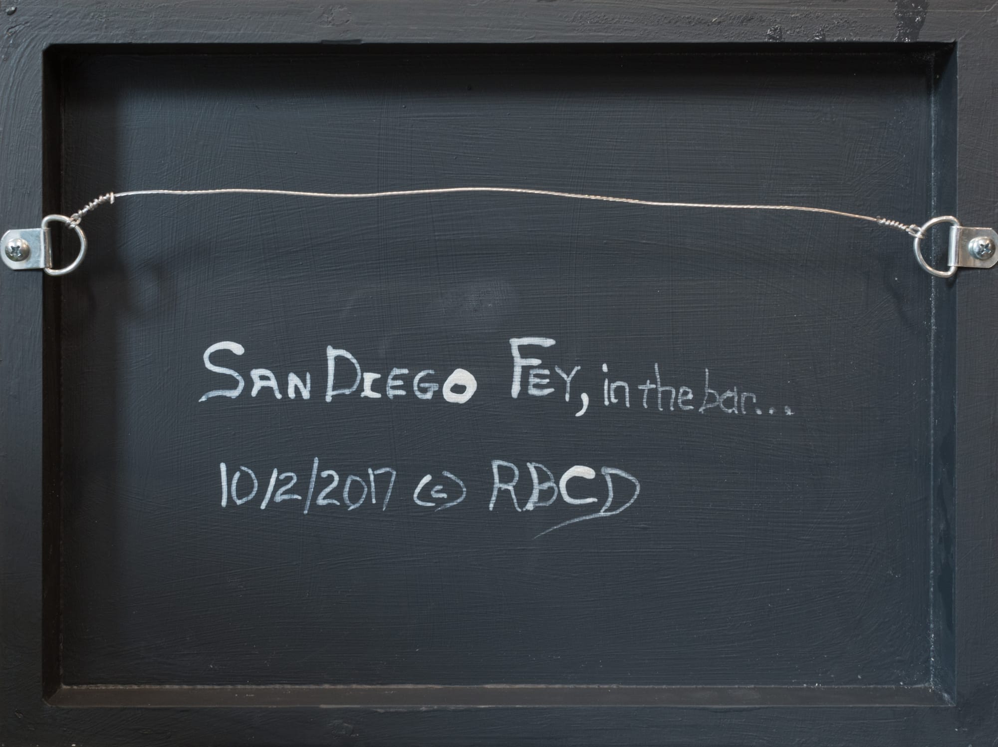 The subject is from a photo shoot held at the Brick Bar in Hillcrest (now closed). Angelica Angeles organized the shoot and invited me as a back up photographer to take my blurry pictures. I had a great time. The owner of the bar was deeply integrated into the art community and was very supportive of this and several other art ventures. 3 coats of Liquitex acrylic gloss varnish with Cad Red Medium around the edges, 12x16x1.5".