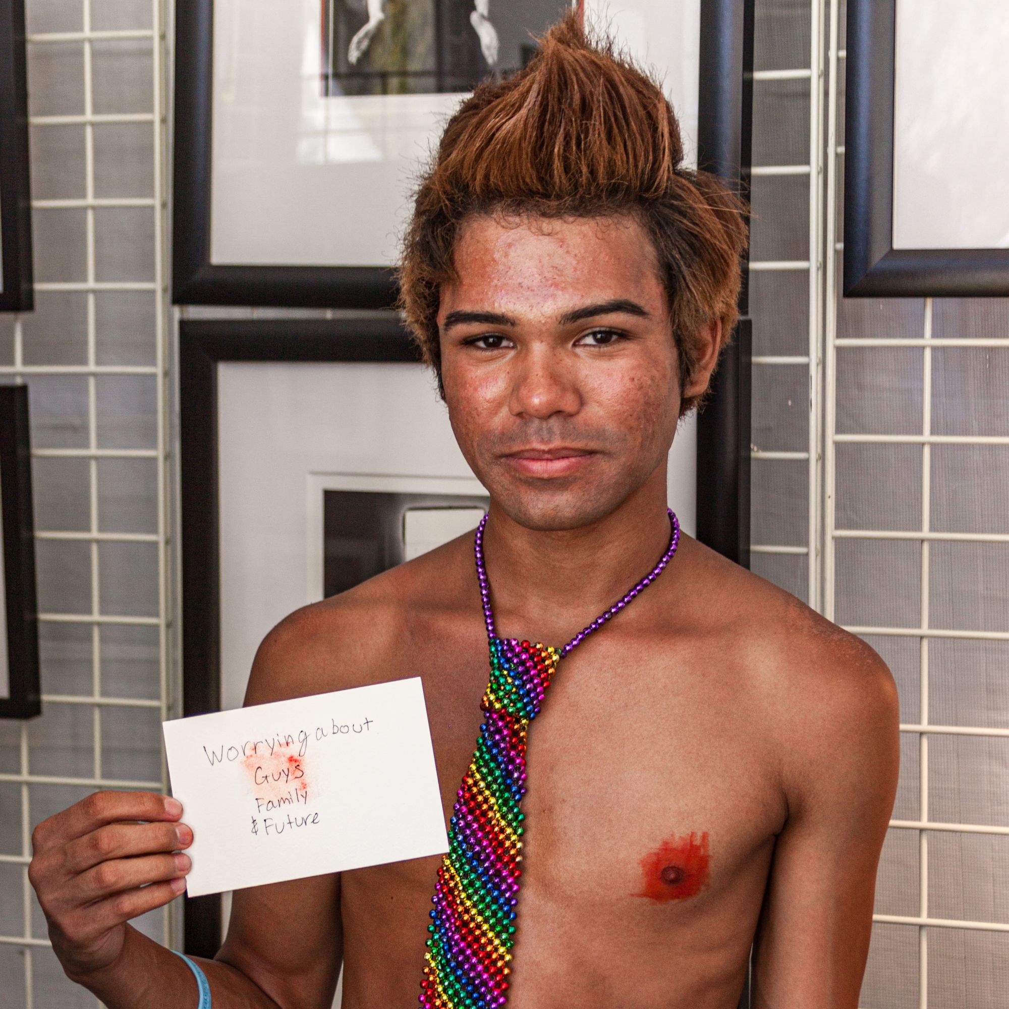 I had 2 interactive pieces going. The 'What are you Proud of sign' and Tainted Milk. Normally Tainted Milk wass private. A person writes down an obsessive thought, makes a nipple print over it, puts it anonymously in a trash can, I make a record, burn it, and then place the ashes in an urn. We went public with this one, but, it was not the first one he made. The first one remained private.